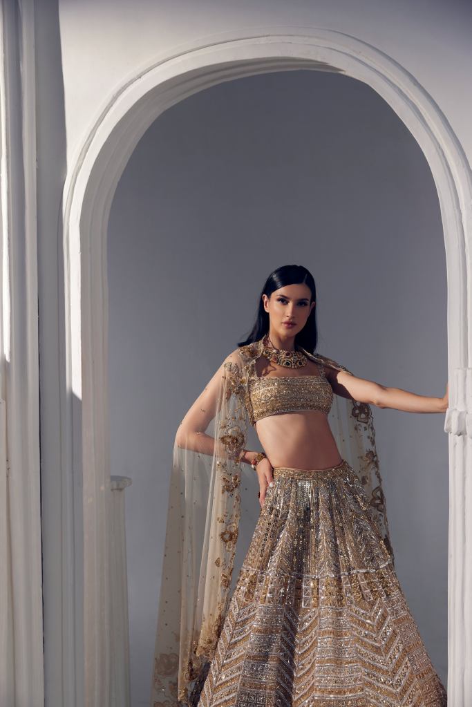 Anarkalis are forever in fashion and are best when you have longer events so they are comfy. Sample baroque designs at Paaro, and expect to see mirror work, cape sleeves, or uneven hemlines. They perform particularly well with indoor locations.
